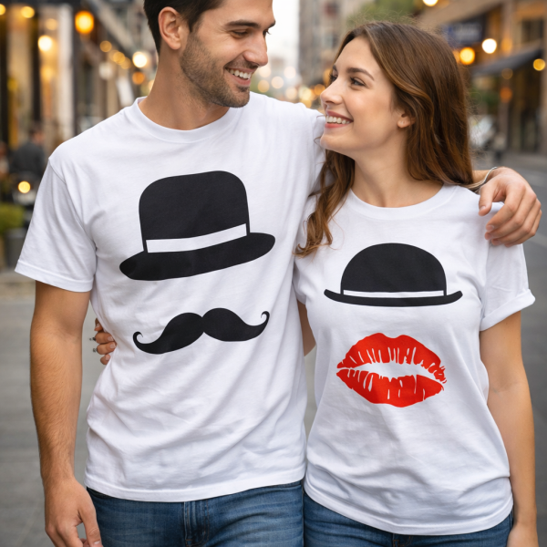 Par de remeras personalizadas para parejas en algodón de alta calidad. Elegí el diseño que más les guste y creá un look único para compartir. Ideal para regalar y sorprender.